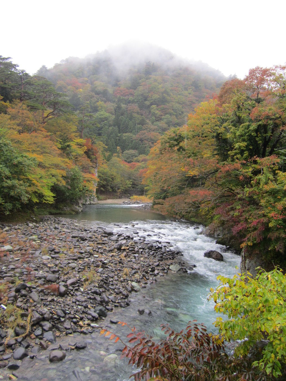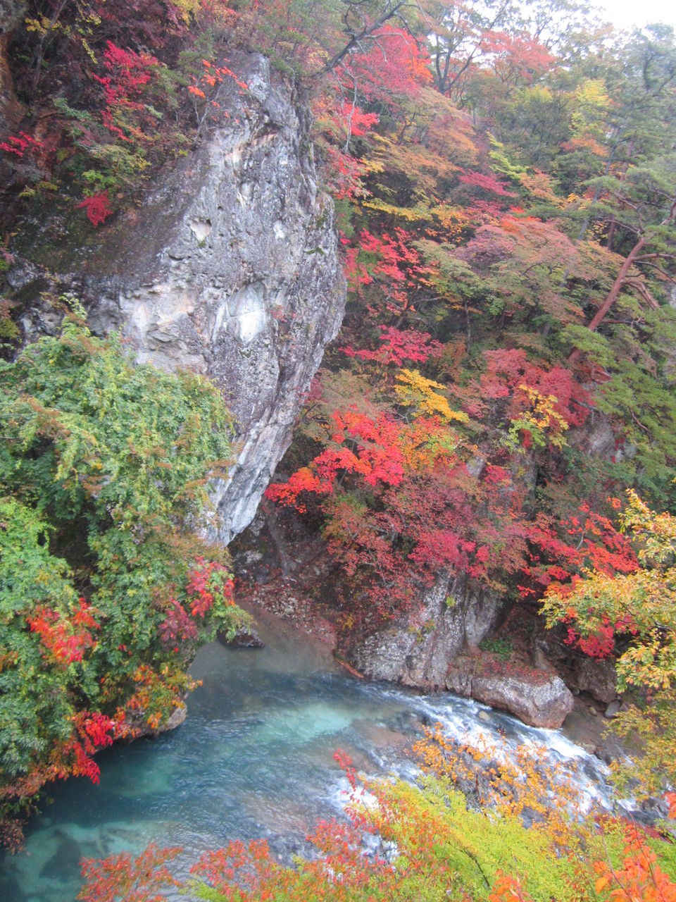 川を挟んで両岸に紅葉が迫っているというのは迫力ある風景ですね。