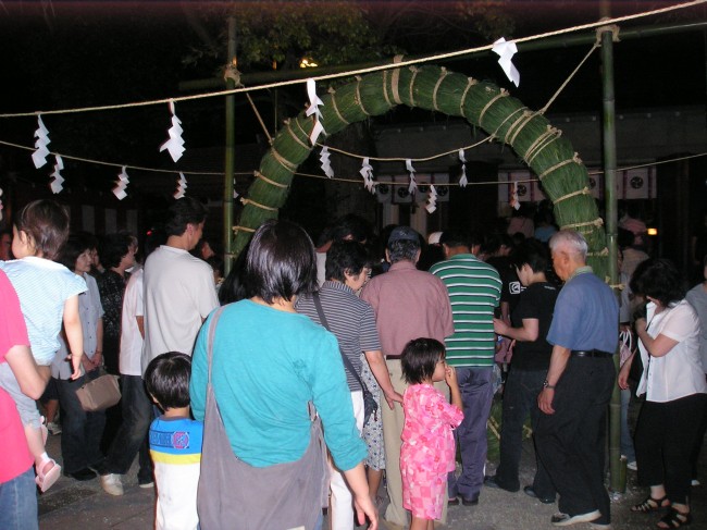 旧来より健康祈願、疫病消除の祭りとして、氏子中心に行われてきました。氏子に配布される人形に氏名を書き、境内に設置される茅の輪をくぐって神前におさめ祈願します。その後神札と茅を巫女から受け取り、身につけたり神棚に飾ったりします。