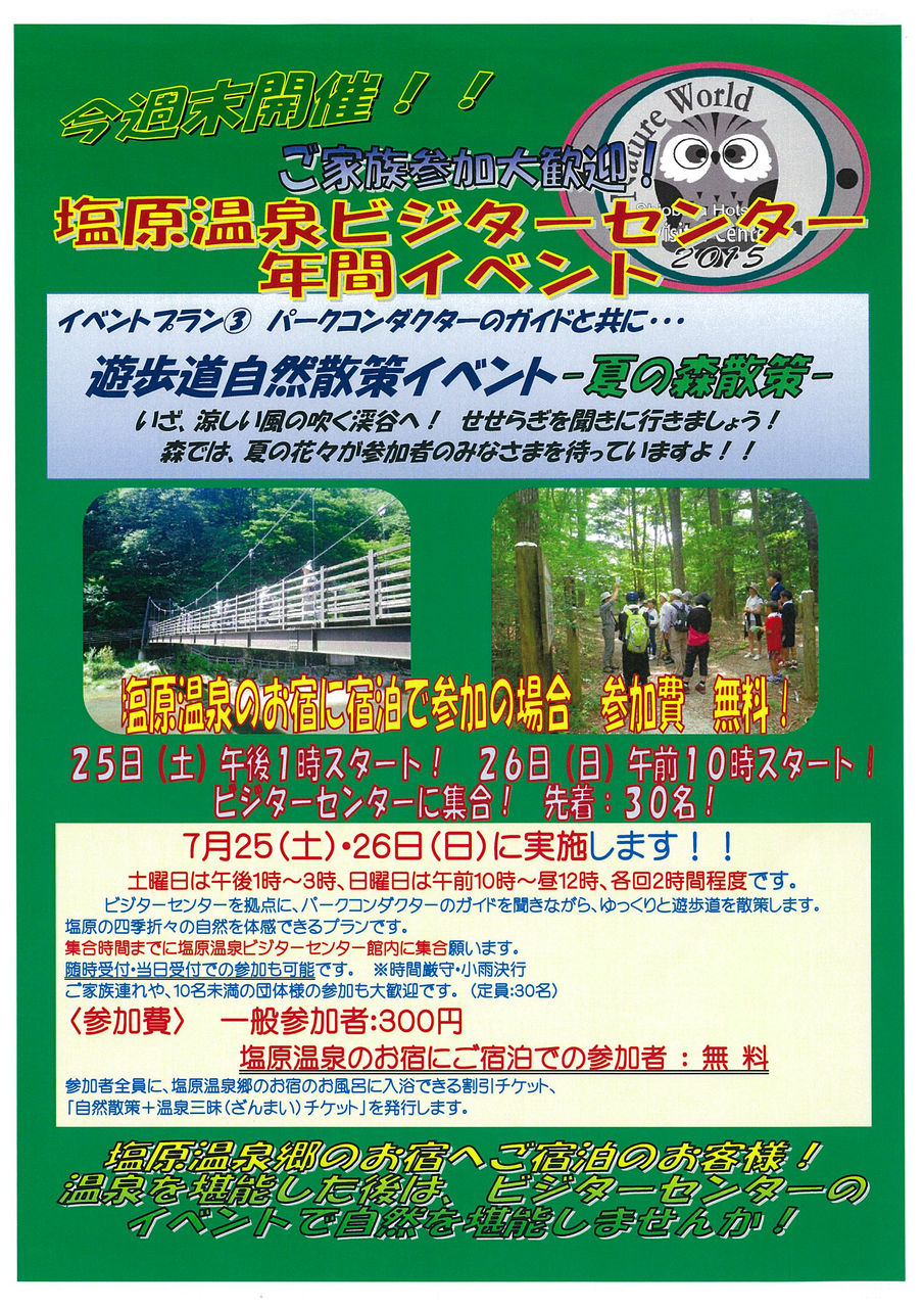※イベントに関してのお問合せ・ご予約は塩原温泉ビジターセンターへお願いいたします。