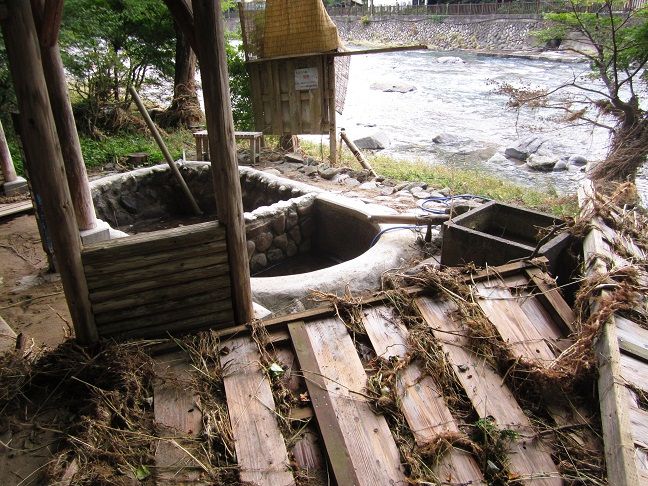 なお、福渡地区にある露天風呂「岩の湯」につきましても、増水による被害を受けご利用いただけません。