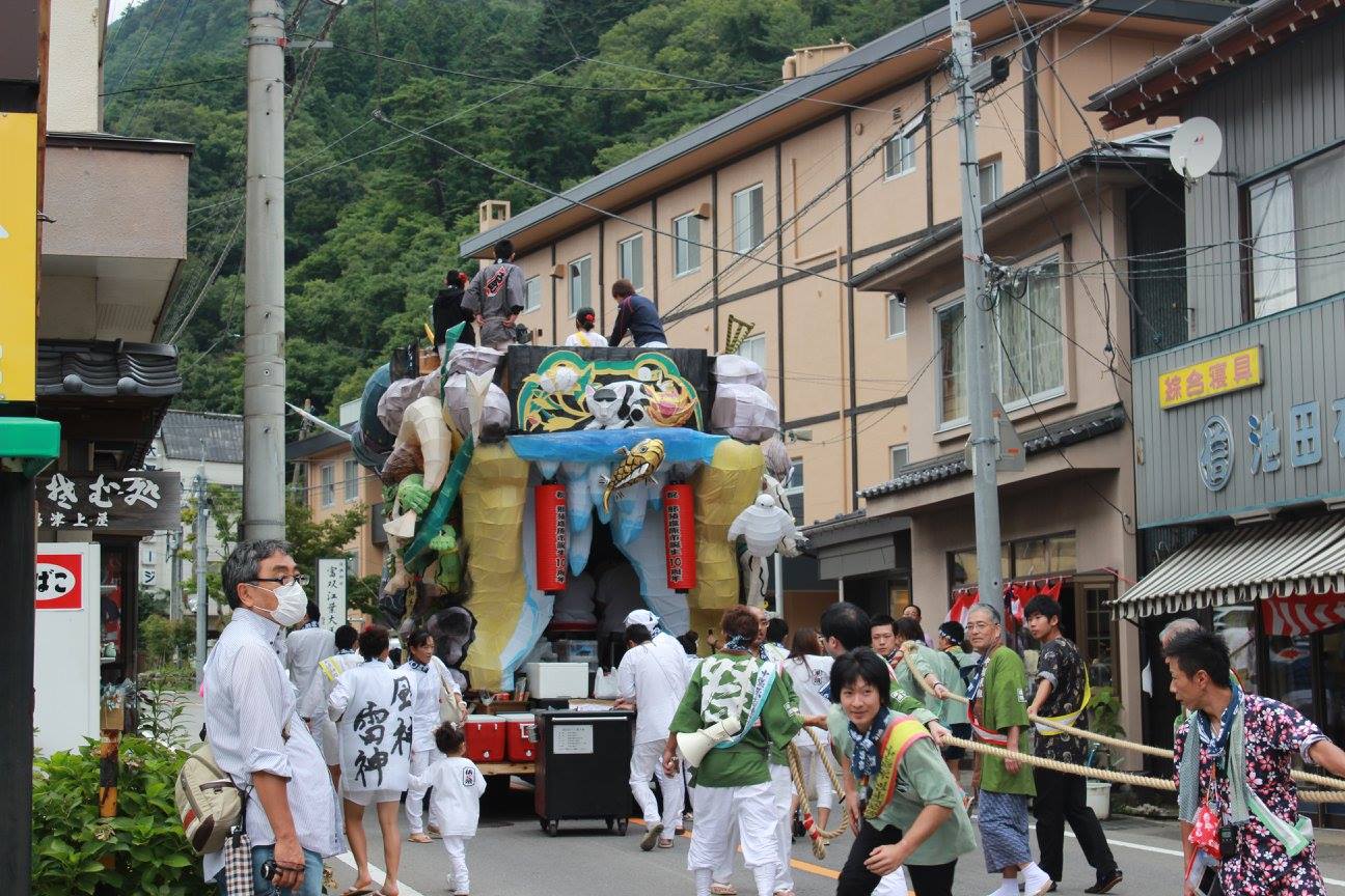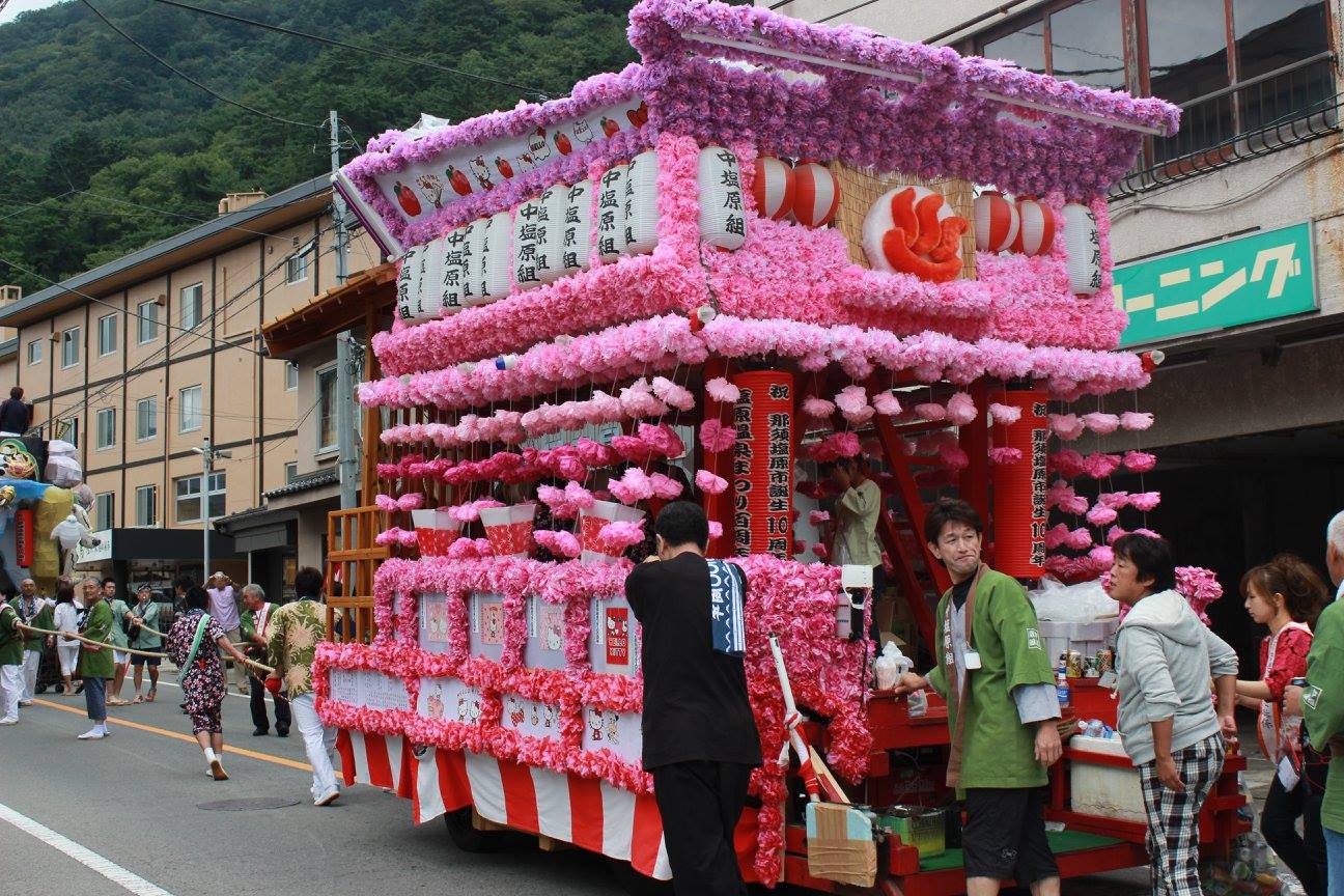 塩原温泉郷に11ある地区のうち、6つの地区(福渡、塩釜、畑下、門前、古町、中塩原)でそれぞれに作られた山車が、毎年温泉街を練り歩きます。