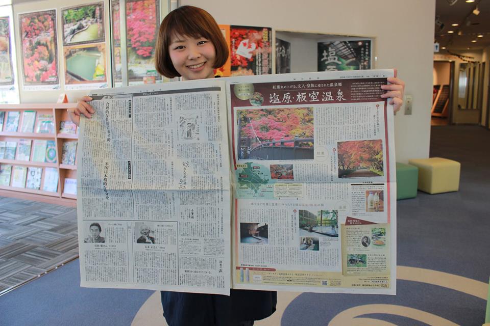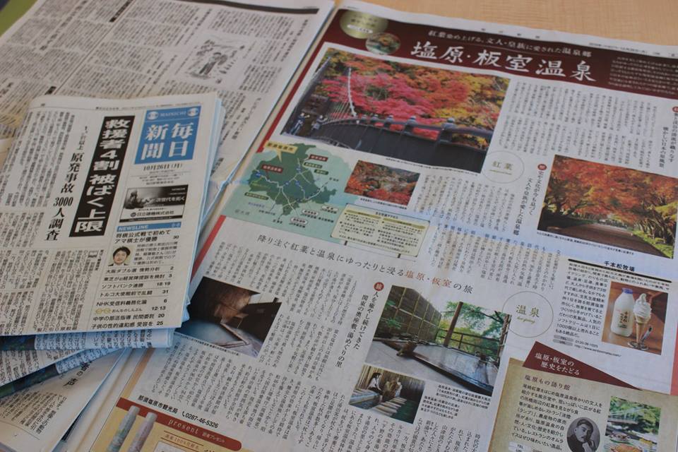 昨日、10/26(月) の毎日新聞で、「塩原・板室温泉」が大きく紹介されています!