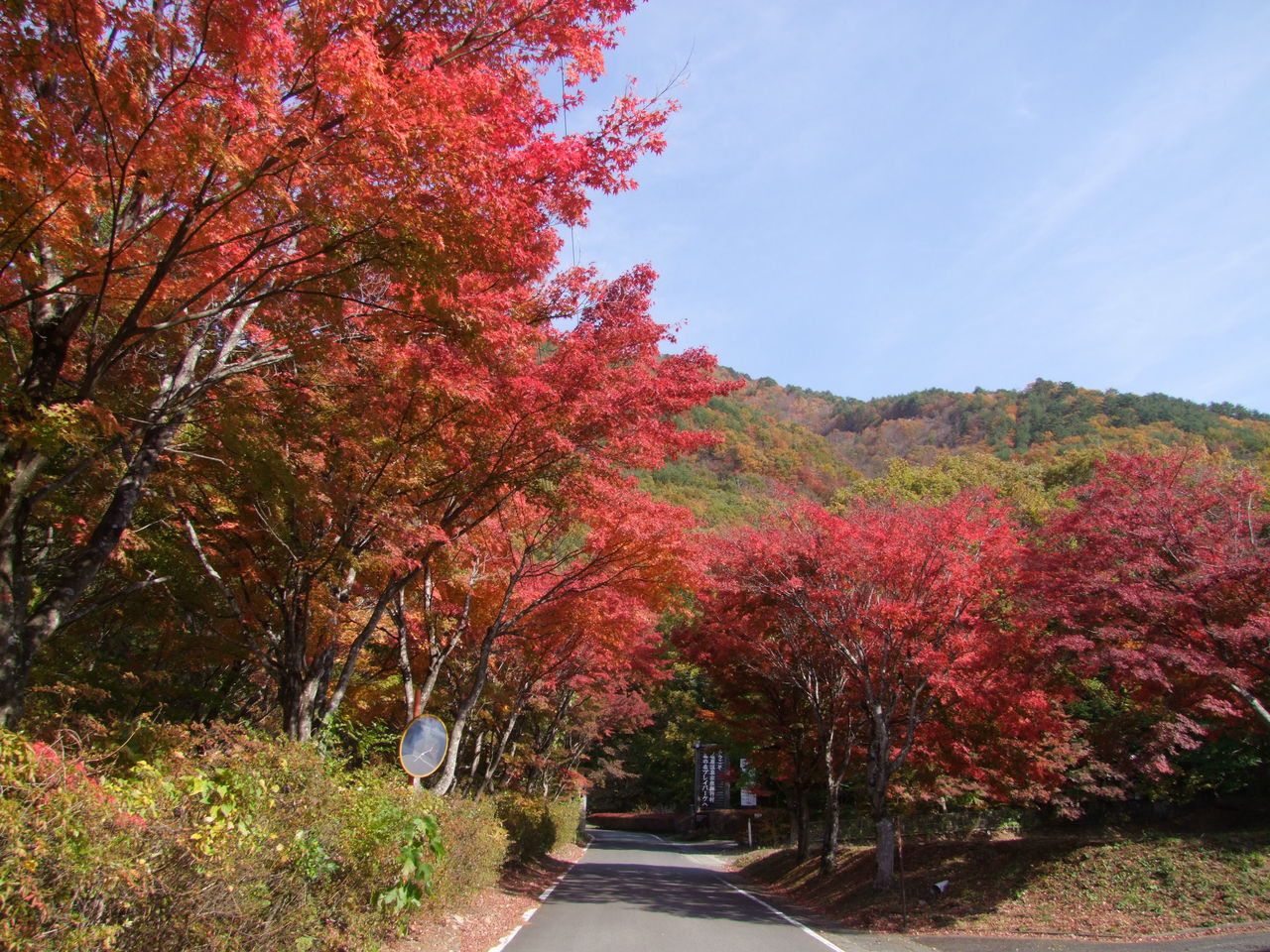 紅葉の見頃ゾーンも塩原温泉街周辺へと移り、箒川に沿った道路を走りながら目にはいってくる景色がとてもカラフルになってきました。箱の森プレイパークの入口を覆うこの木々も素敵です!