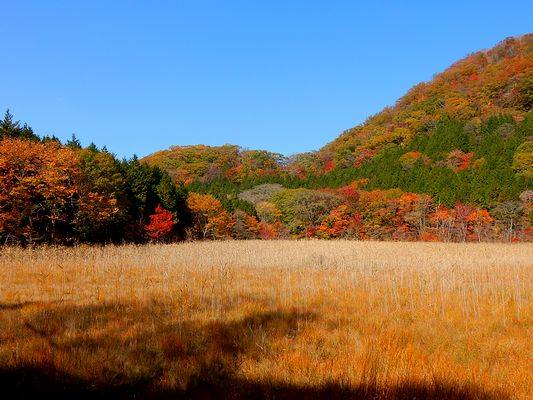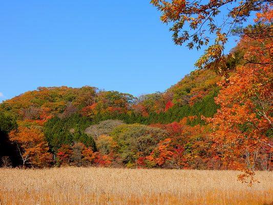 塩原自然研究路にあるヨシ沼園地の紅葉が見ごろを迎えています。