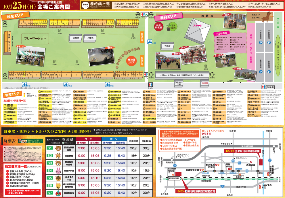 今年は、巻狩まつり開催20回目の記念の年であり、那須塩原市誕生10周年の年でもあることから、イベント等を拡充し盛大に開催します。