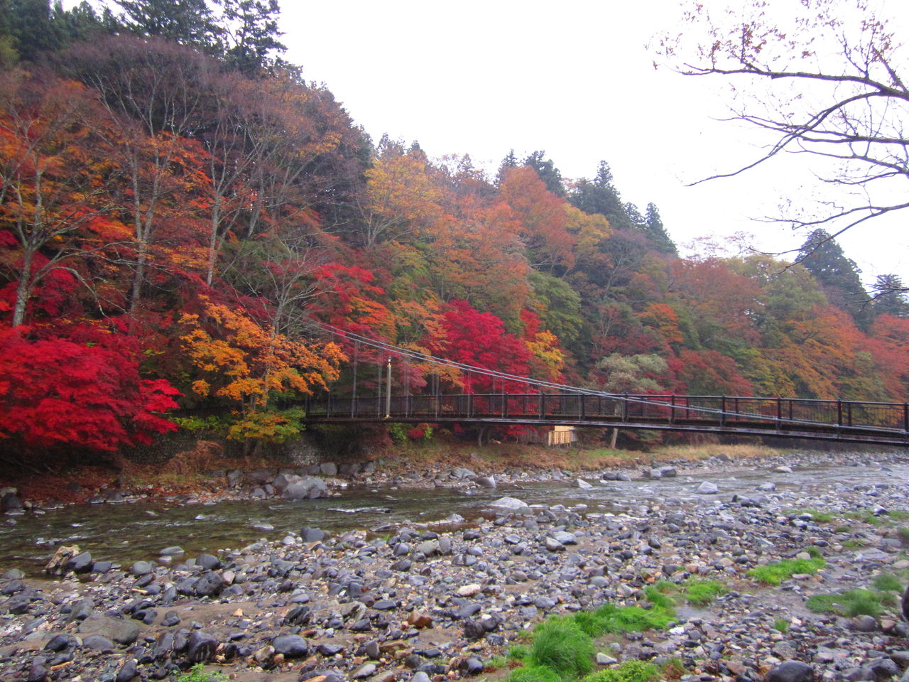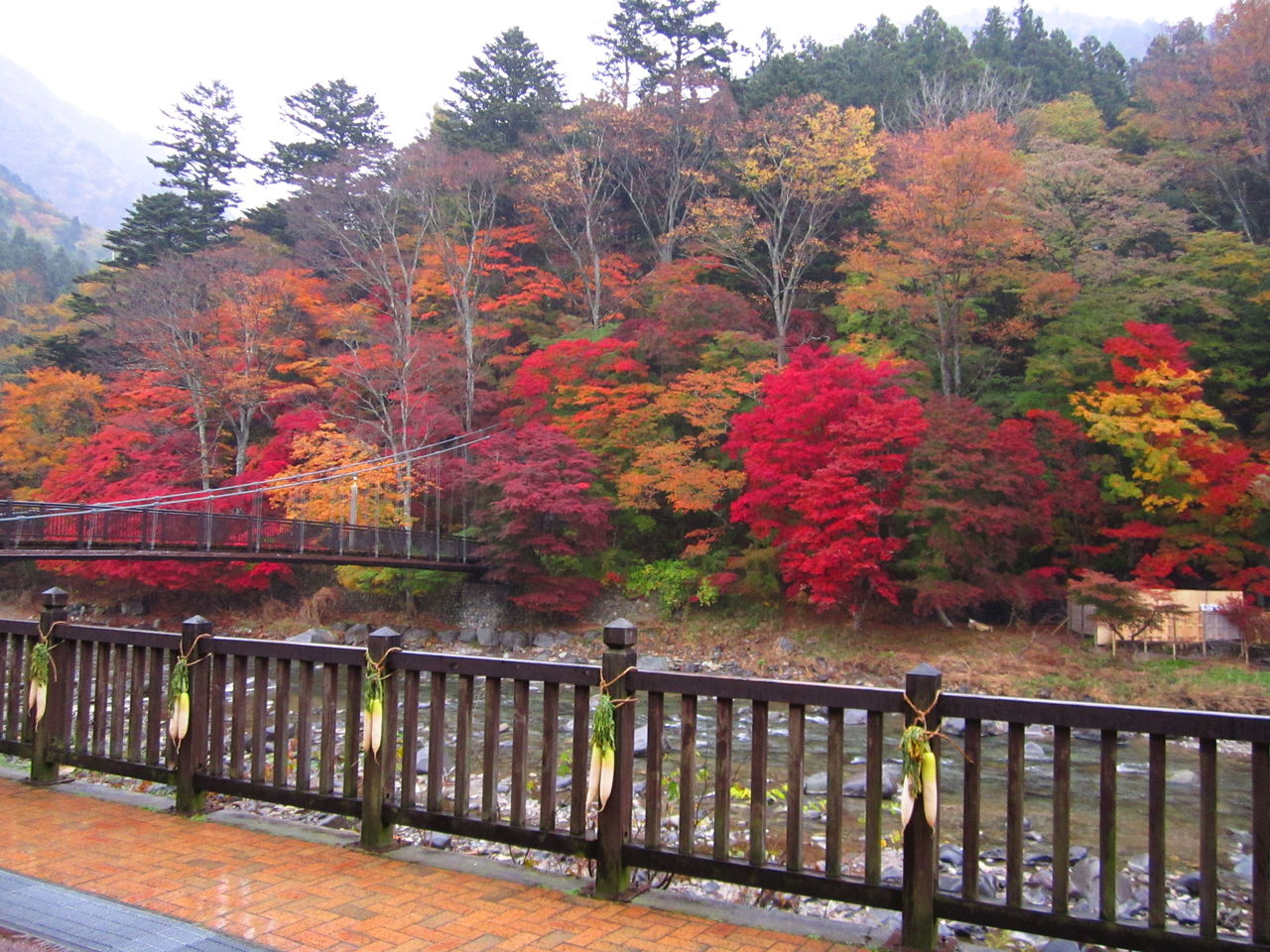 紅の吊橋周辺は見頃となっております。