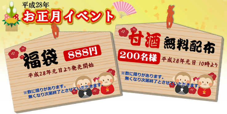 ○1月1日(元日)10時より、甘酒を200名様に無料配布いたします。