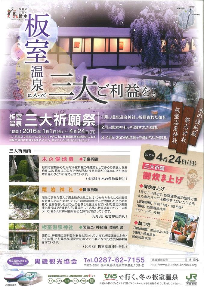 1/1~4/24 下野の薬湯 板室温泉では、1月から三大祈願祭を行います。
