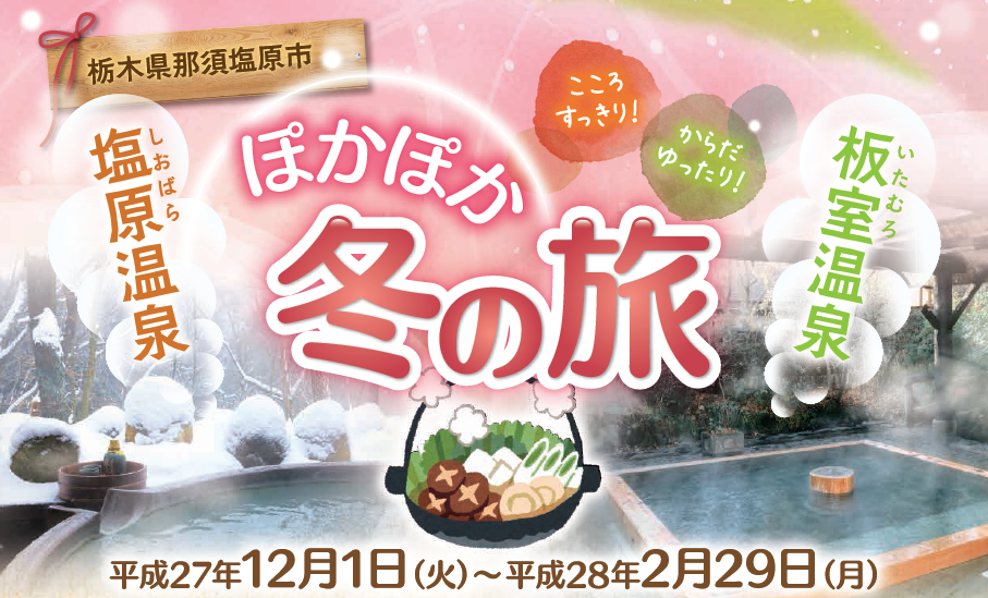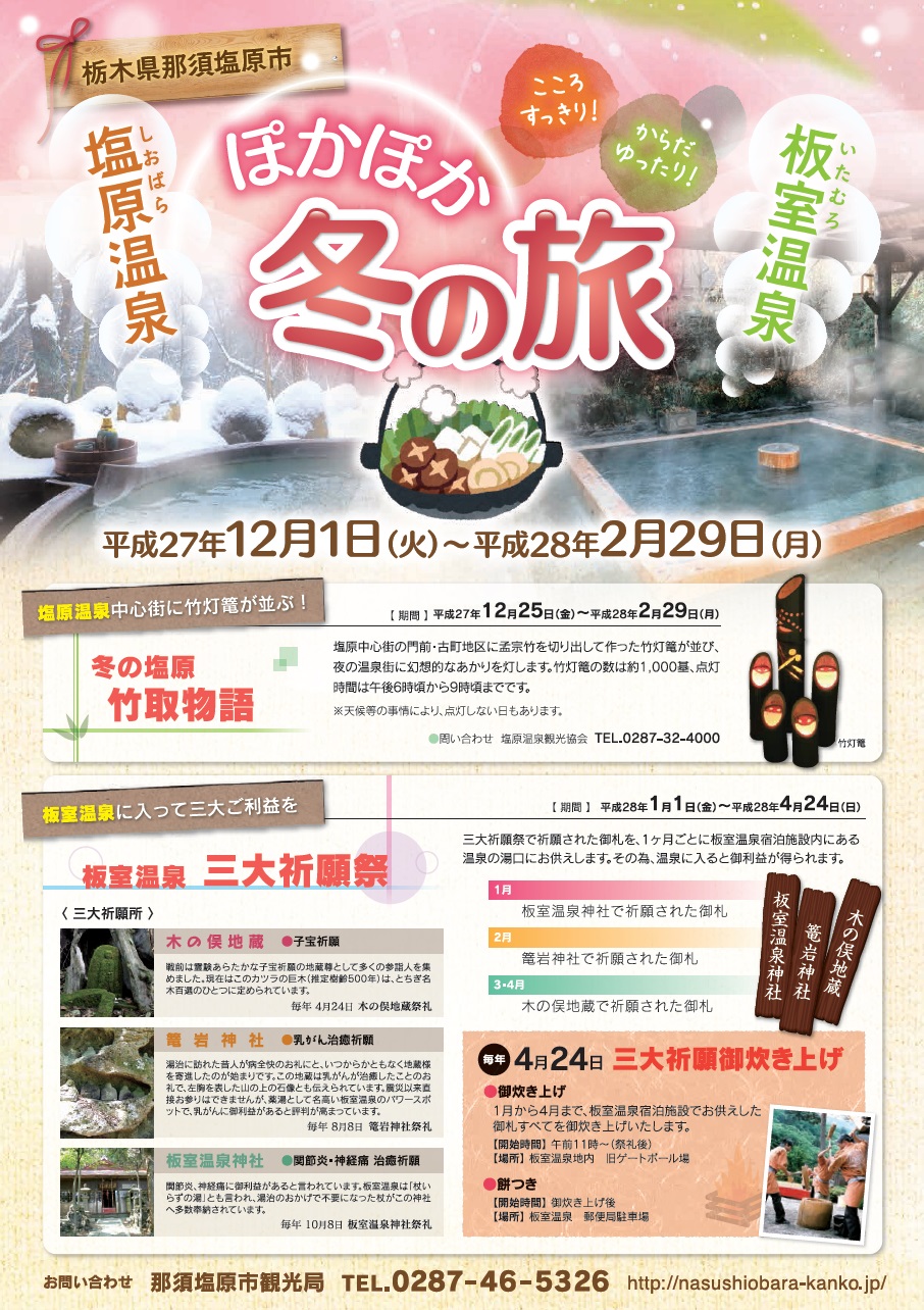 「宿自慢のあったか料理」、「冬の塩原 竹取物語」、「板室温泉 三大祈願祭」等をご用意。