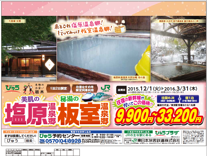 那須塩原市観光局がJR東日本とタイアップした冬のスペシャルプランを開始しました。