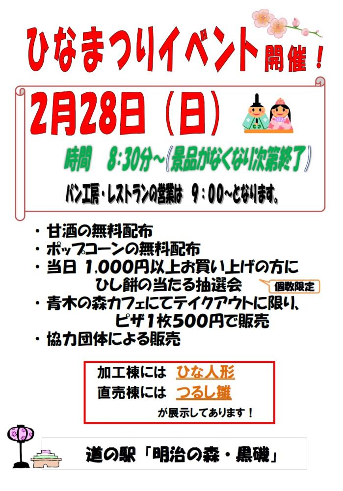 道の駅「明治の森・黒磯」では2月28日に「ひなまつりイベント」を開催します!!