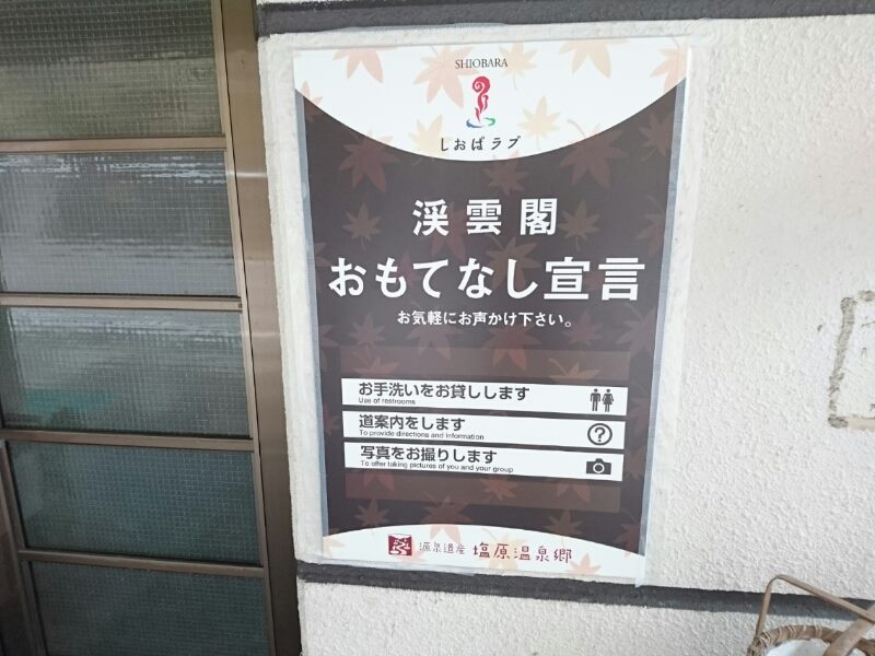 「おもてなし宣言看板」を始めました。 (塩原温泉)