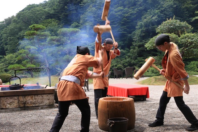 御焚き上げ終了後餅つきがあり、参拝者にはお餅が振る舞われます。