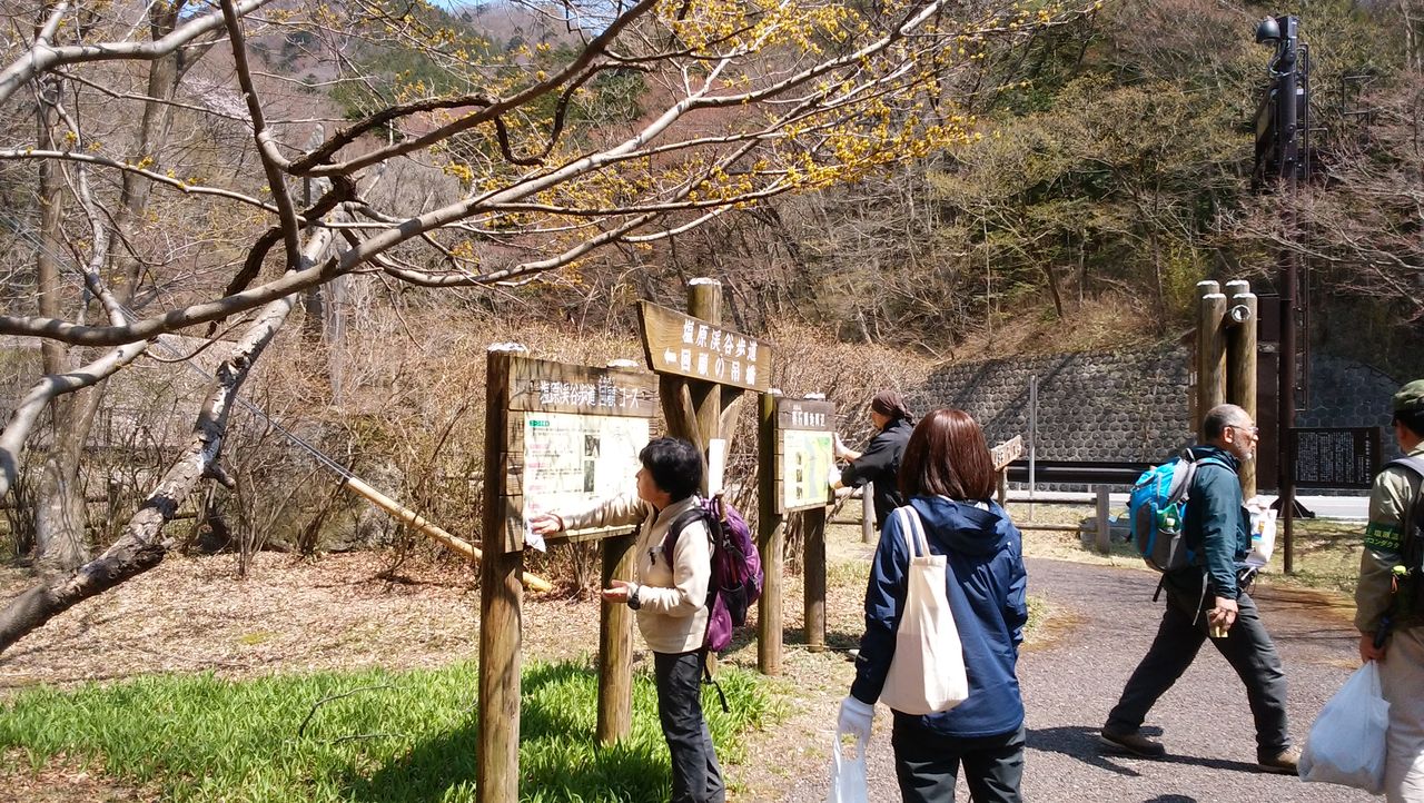 これは塩原のハイキングコースを綺麗にする取り組みで、ゴミを拾ったり、案内看板を磨いたりするものです。