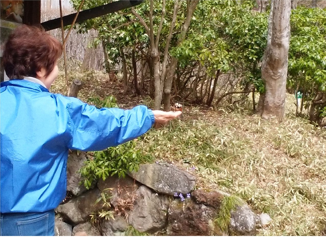 ヤマガラが手の上にいるのが見えるでしょうか?