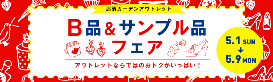 【B品&サンプル品フェア】は、5/1(日)~5/9(月)まで開催!