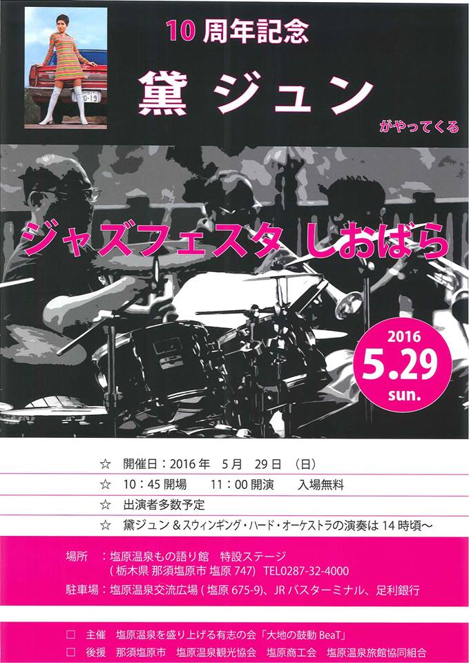 5月29日に開催される「ジャズフェスタしおばら2016」に黛ジュンさんがやってくるそうです。