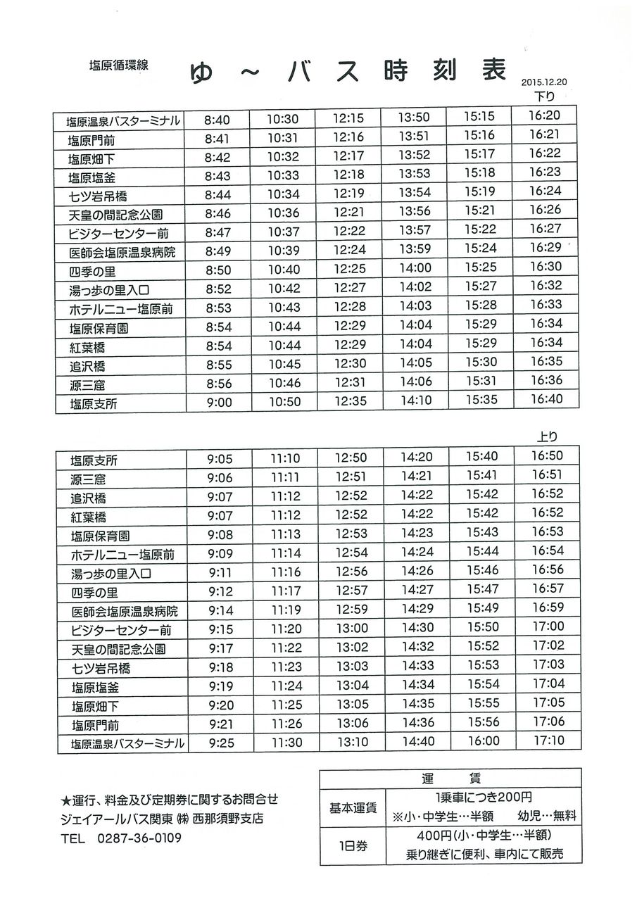 塩原温泉 『ゆ~バス』 公共交通機関で塩原へお越しの方は必見です