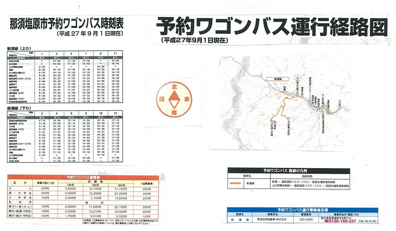 『予約ワゴンバス』も那須塩原市の色々な場所を走っており、路線と時刻は決まっていて、乗りたい場合は予約をします。