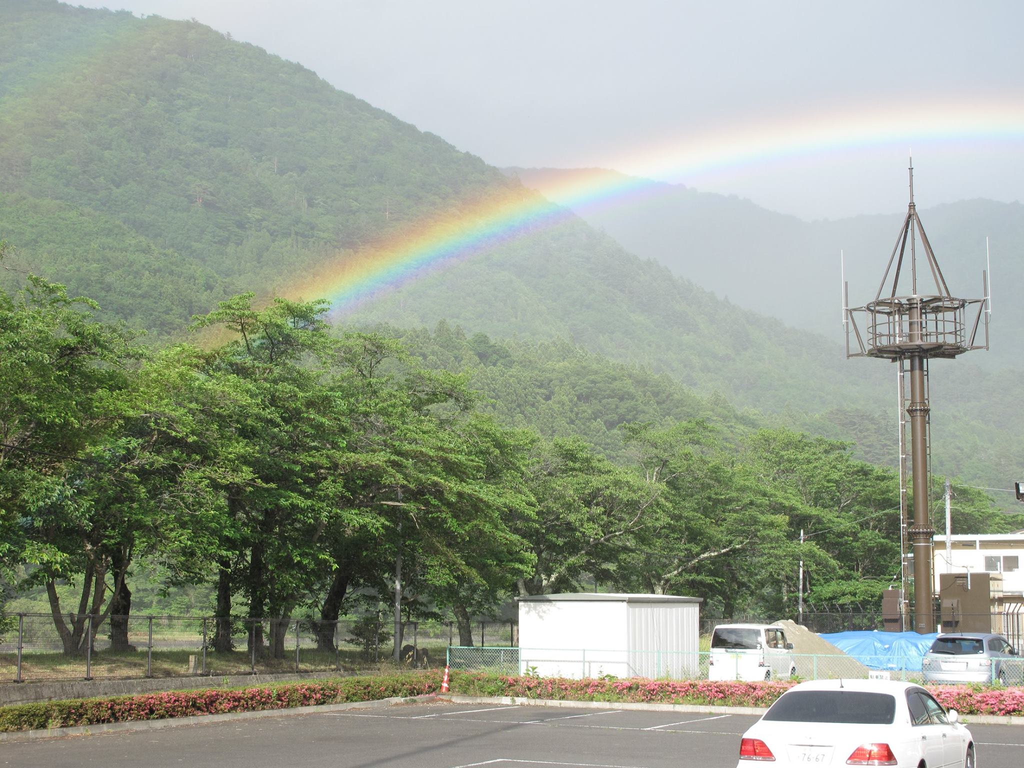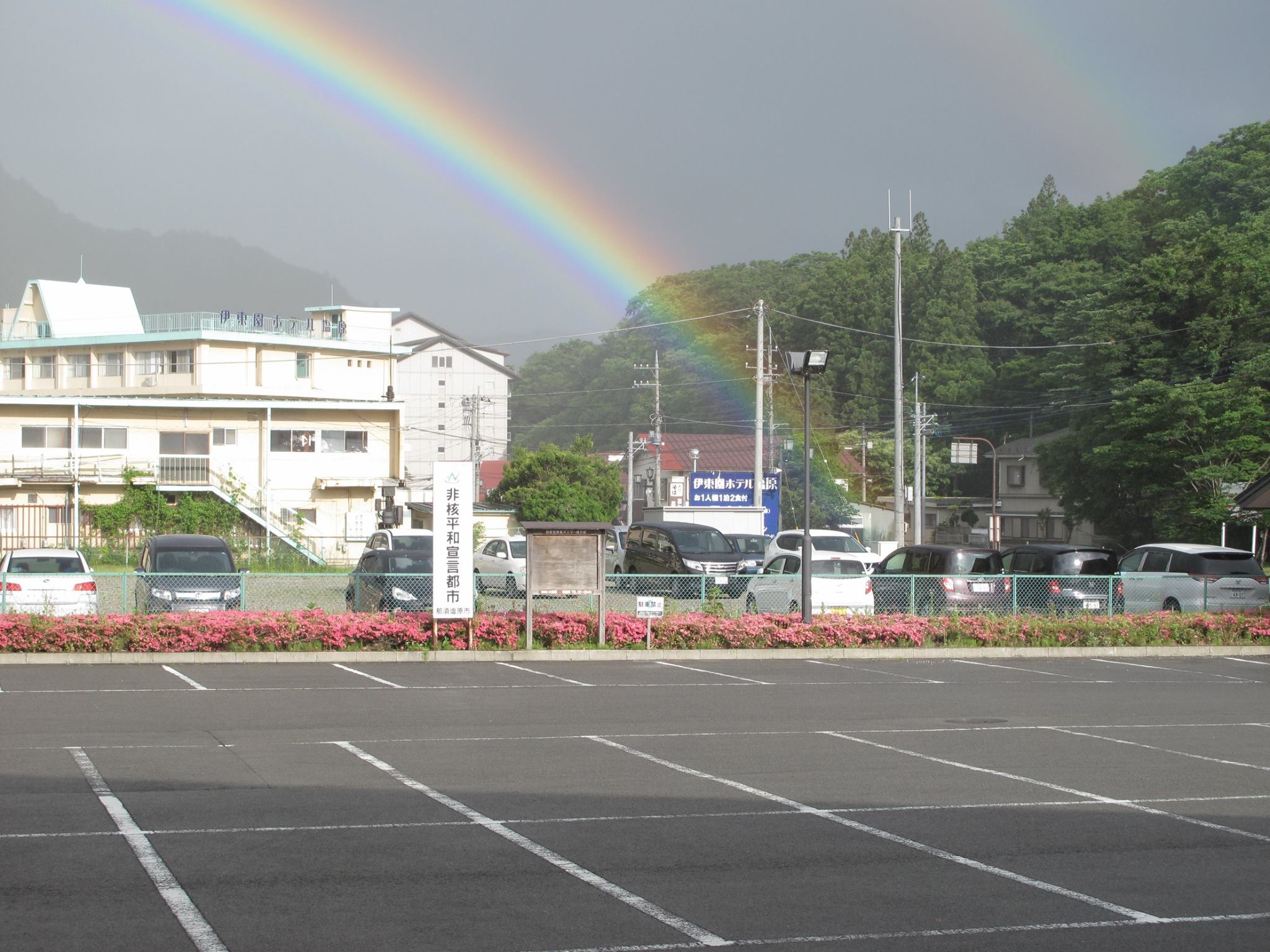 那須塩原市塩原支所から東に虹がかかりました。 那須塩原便り2016年6月16日 昨日午後4時頃、那須塩原市塩原支所から東に虹がかかりました。 虹は、那須塩原市塩原支所から見ると伊東園さんの上空にあるようで、距離にして100mです。 現在の日本では、虹の色は7色とされていますが、物理学の視点では無限の色だそうです。 (Wikipediaより) 何か明日いいことがありそうな、そんな気分になりました。 皆さんにも、お裾分け・・・ Sharing Twitter0 Facebook0 Google +0 Email Print