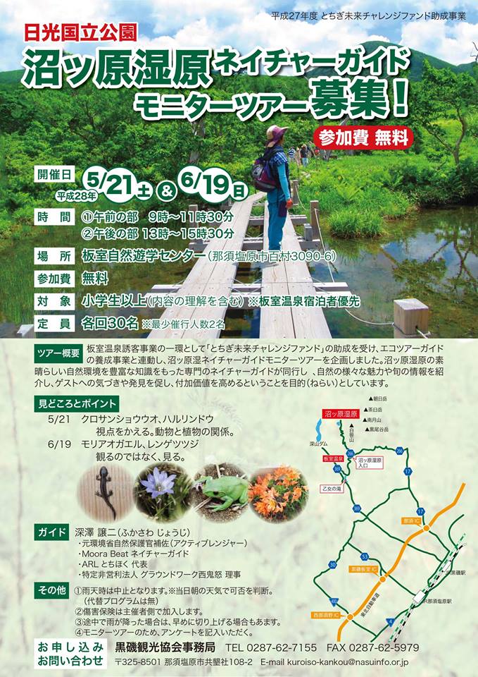 板室温泉誘客事業の一環として、沼ツ原湿原ネイチャーガイドモニターツアーを企画しました。