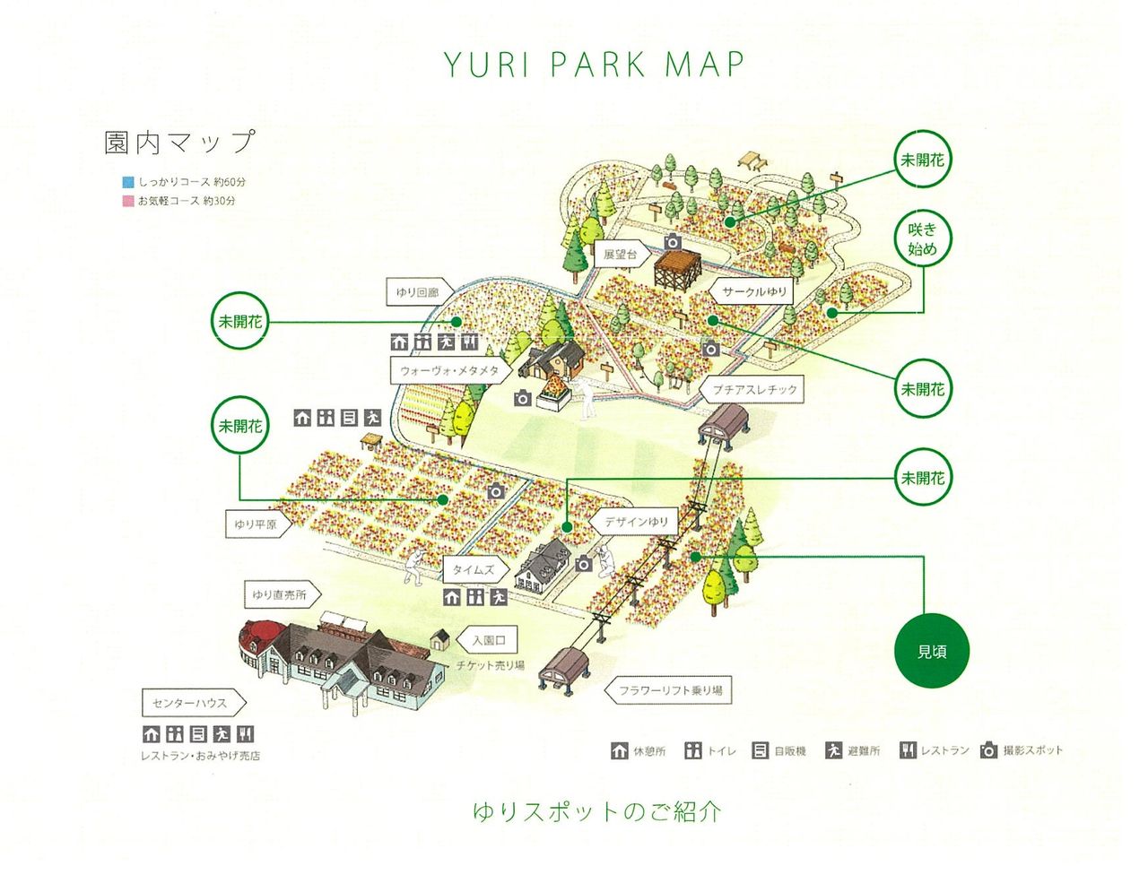 図の右下「フラワーリフト」のライン沿いが見頃です。