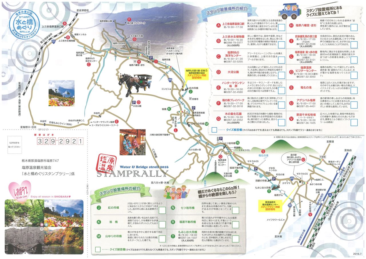 このスタンプラリーは塩原温泉に多々ある滝や吊橋などを巡っていただき、暑い夏を涼しく、また美しい渓谷美をたくさんのお客さんに楽しんでいただけるイベントです。