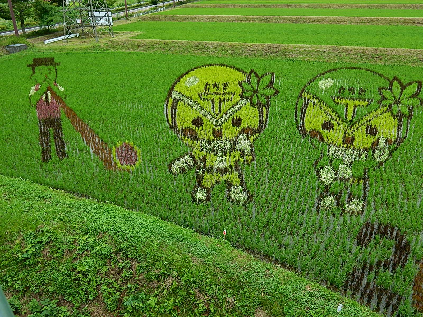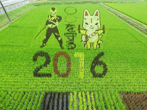 那須塩原市内の2ヶ所(道の駅湯の香しおばらと、那須塩原駅付近)で、田んぼアートが見られます。いずれも市内の農家の中野さんによるものです。中野さんは6年前から独学で田んぼアートを手がけており、昨年から2ヶ所に。年々図案も手が込んできていて、見ごたえがあります。道の駅湯の香しおばらではとちまるくん、那須塩原駅付近は、栃木を守る大人気のローカルヒーロー「雷様剣士ダイジ」と、那須を守る「きゅーびー」。