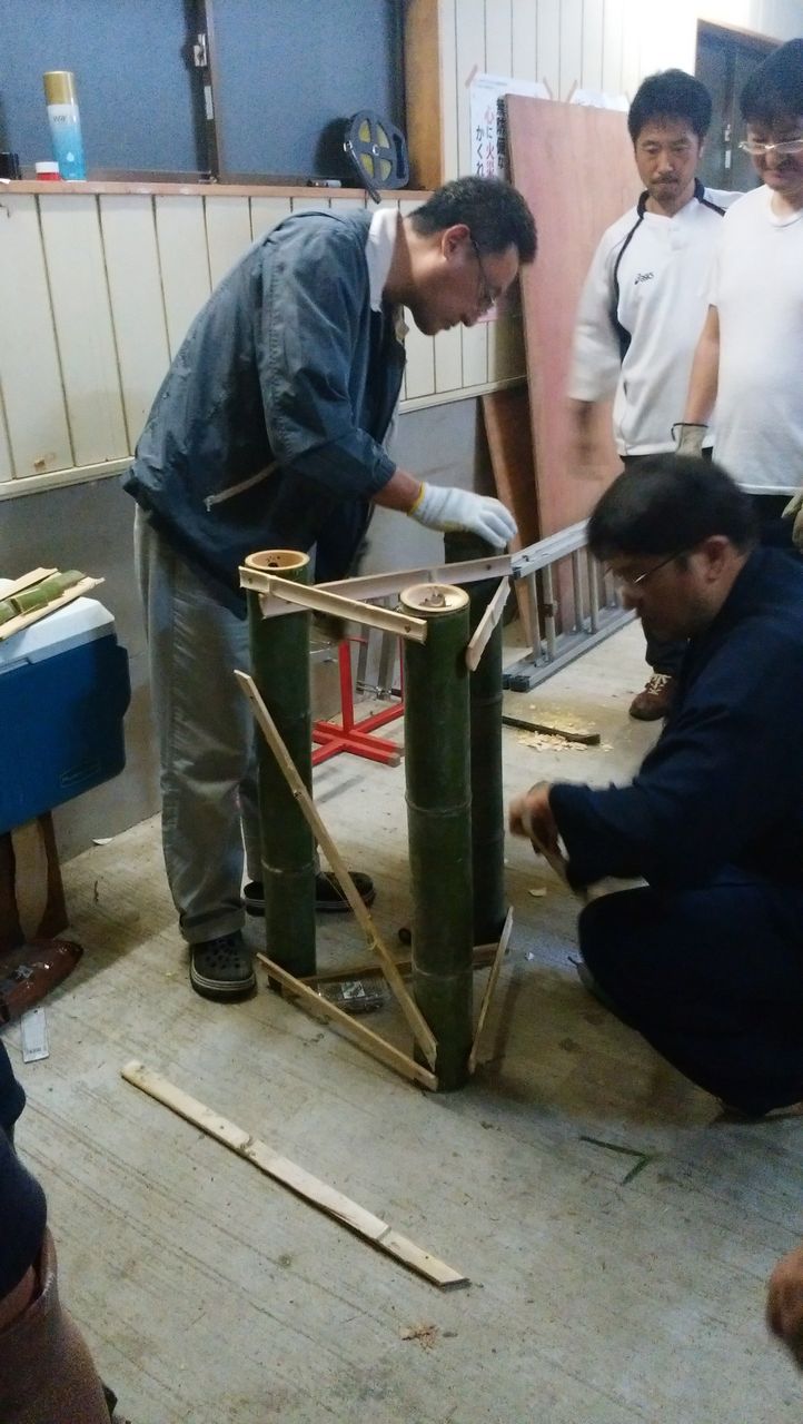 昨日(10/3)は町内の方々に集まってもらい、竹灯籠の制作講習会を実施しました。