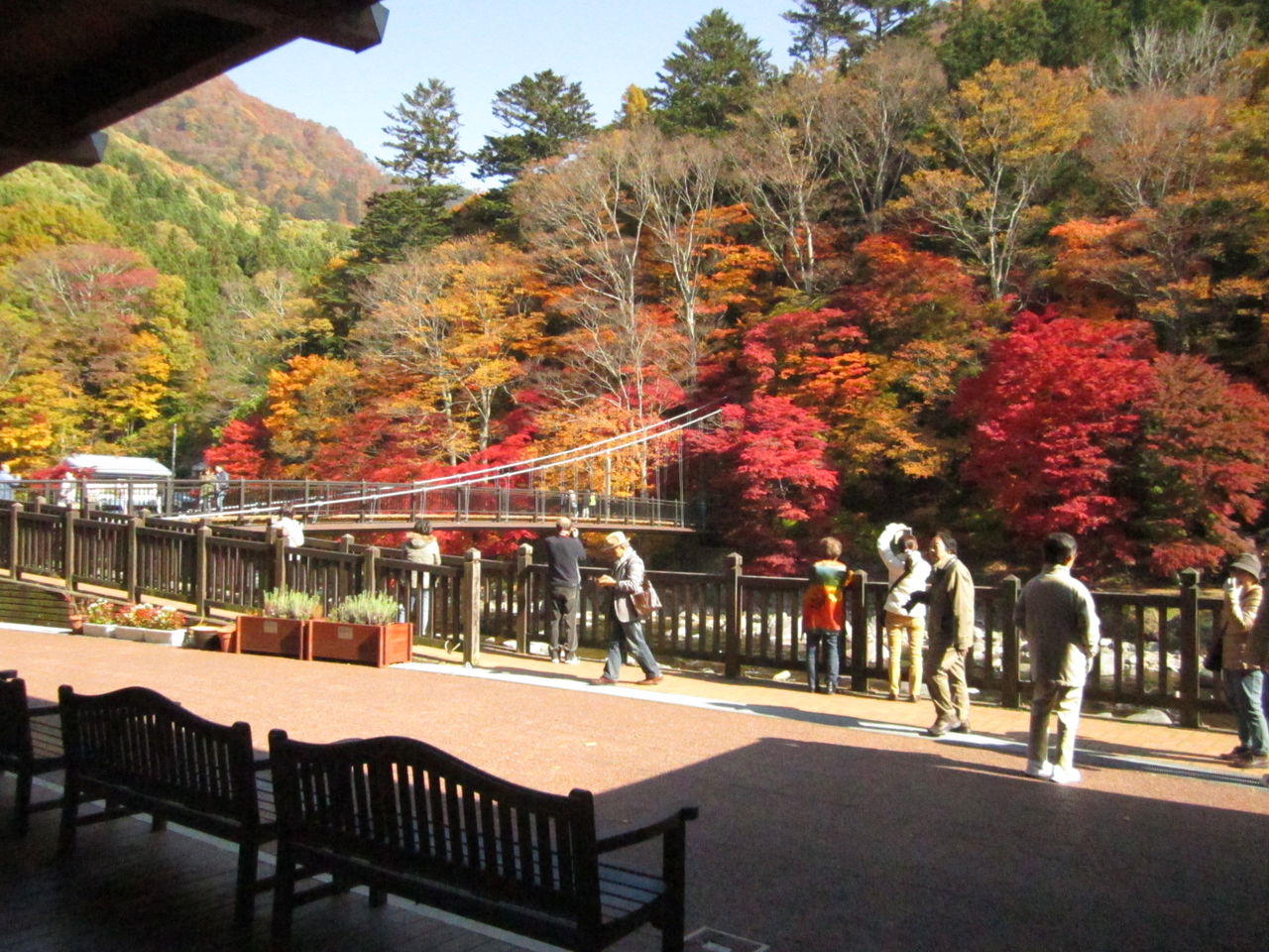 真っ赤なモミジの下はとても気持ちいいでしょう。