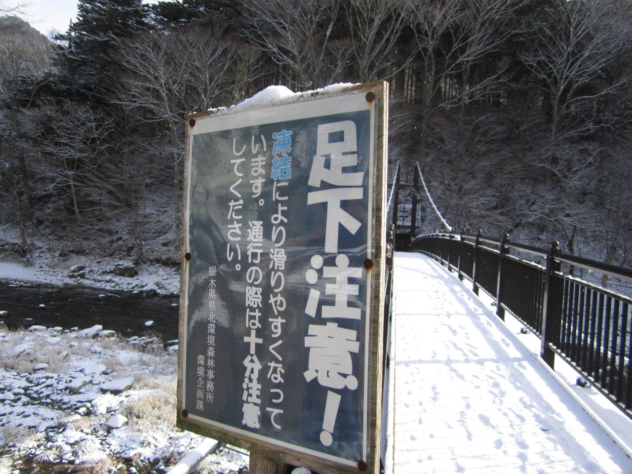 塩原は山の上の方や日陰の吹きだまりなど、場所により積雪や凍結の場所もあります。