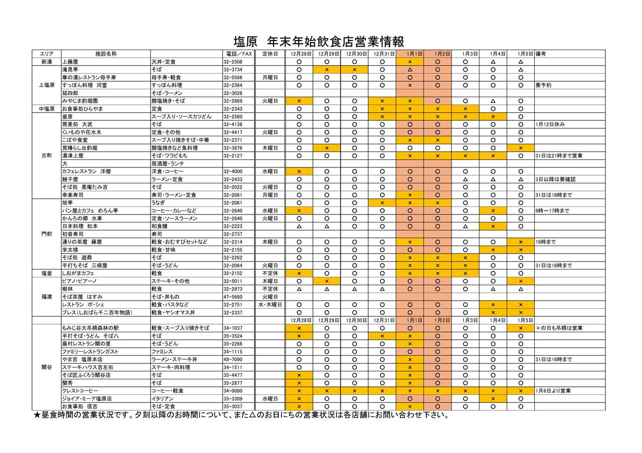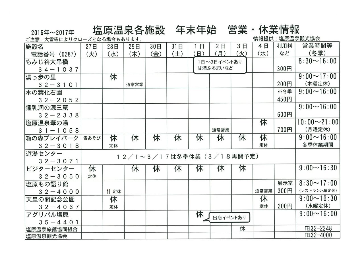 主な観光施設の年末年始営業情報は↓↓↓こちら。