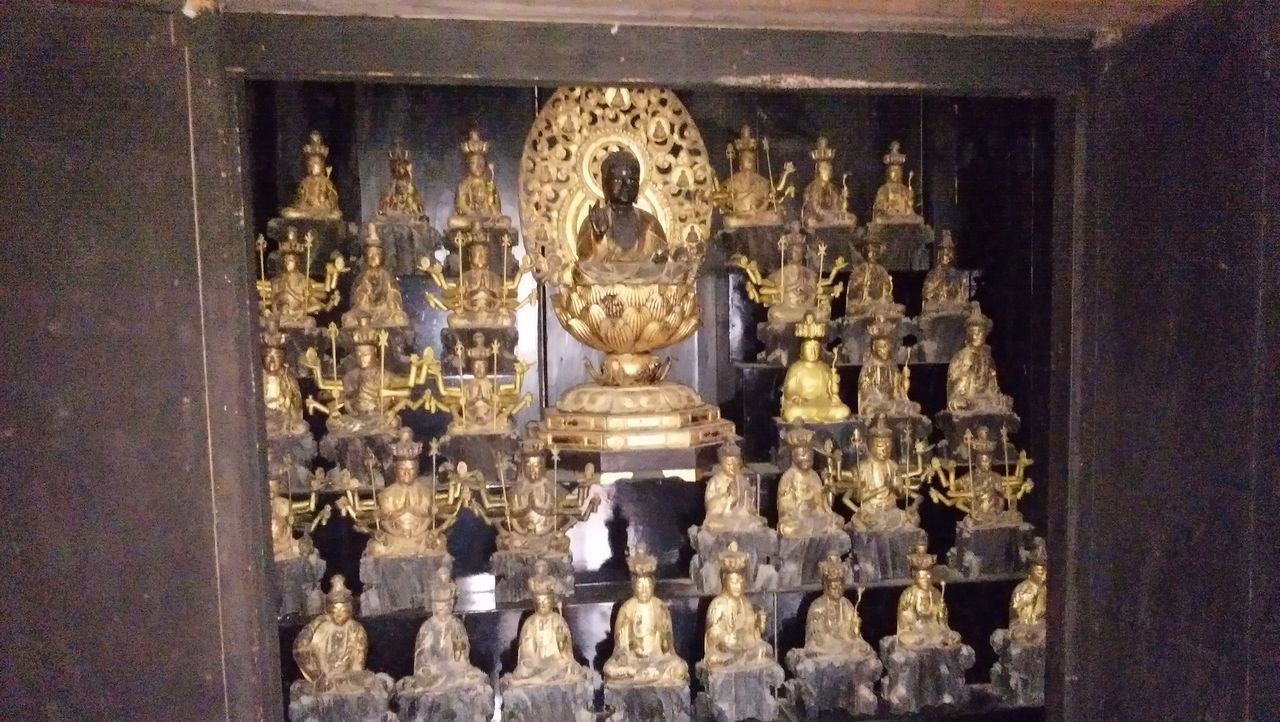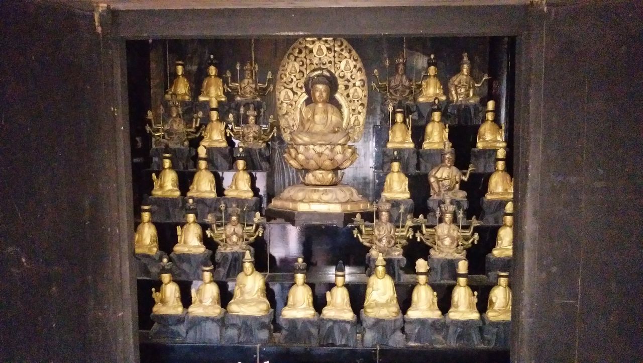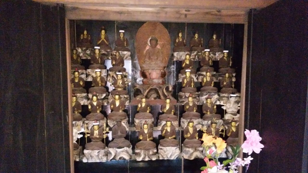 また、三尊仏もあり、それぞれ阿弥陀・薬師・釈迦如来と言い、各間の本尊として間の中央に安置されています。