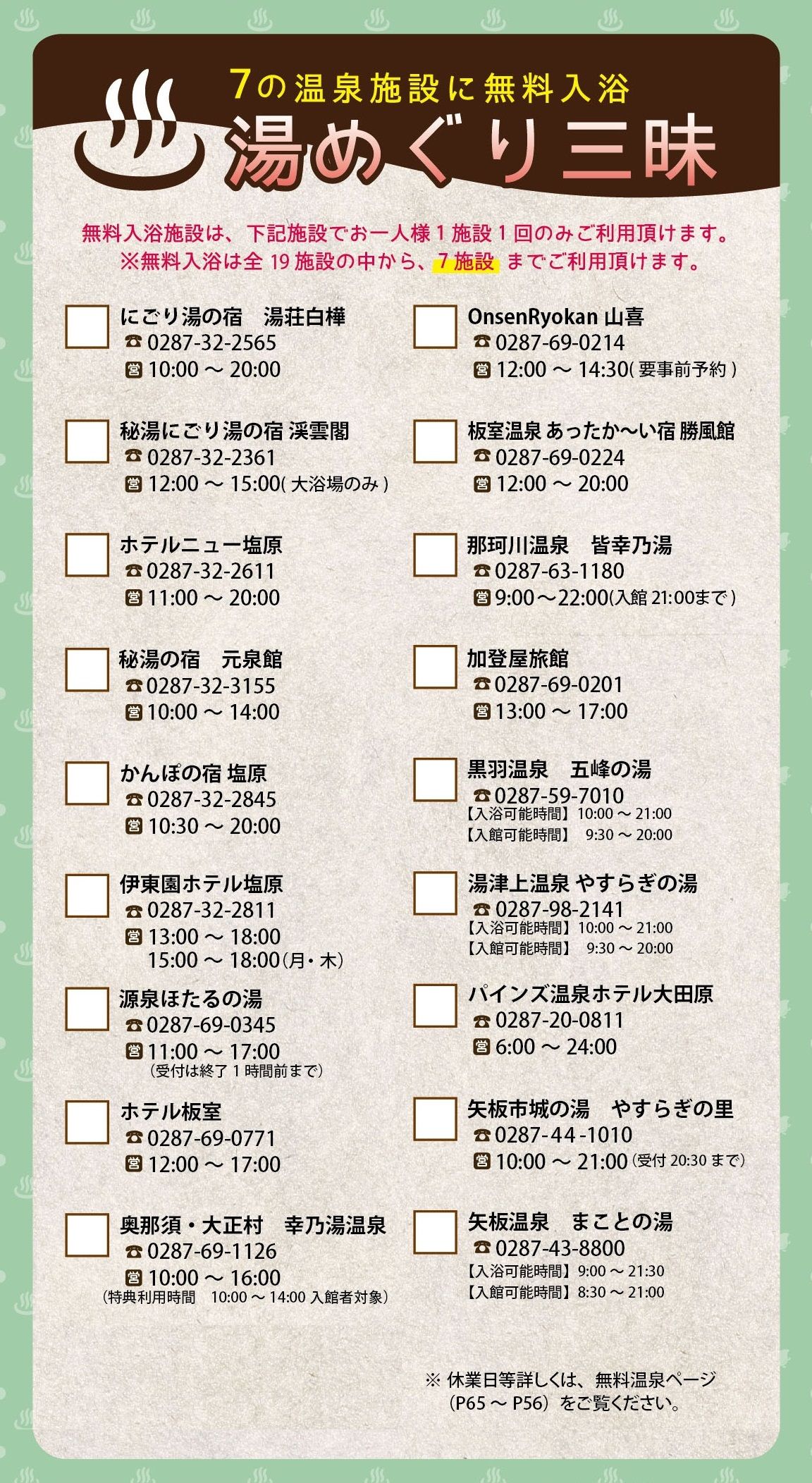 そして、目玉は『18の温泉施設の内、7ヶ所無料で入れる』という特典です。