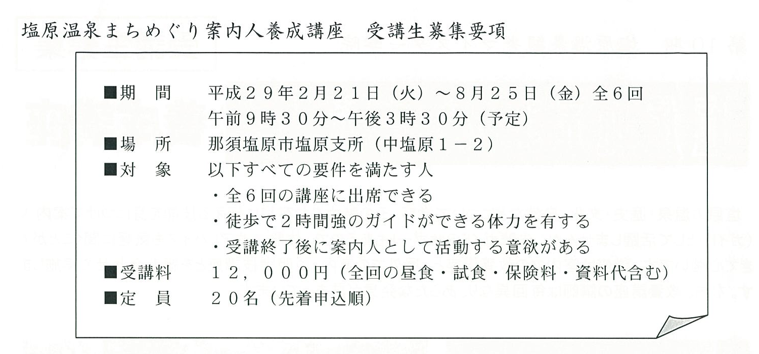 塩原の歴史や文学など、様々な案内が出来るようになります。