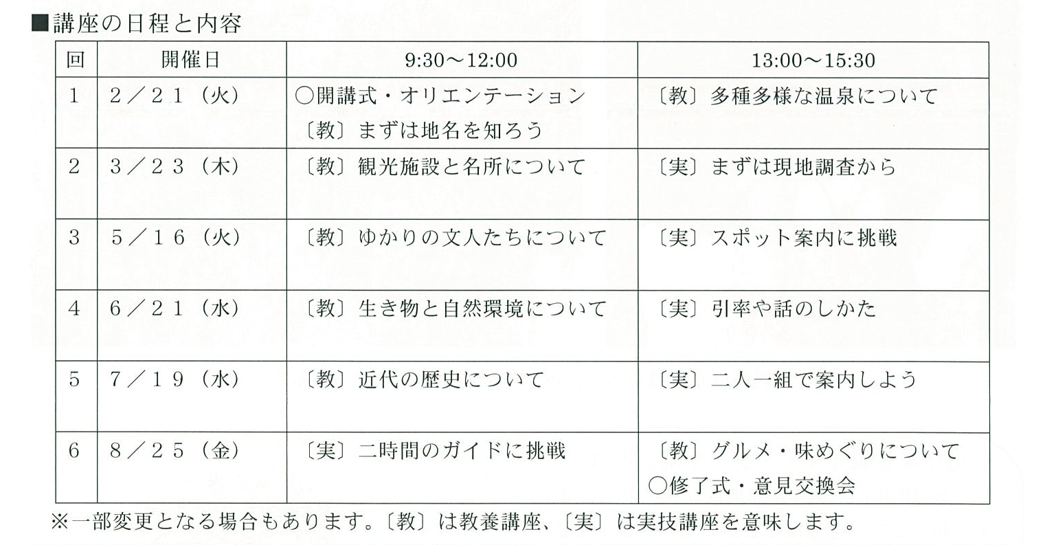 まちめぐり案内人になる為には以下の講座を受講していただきます。