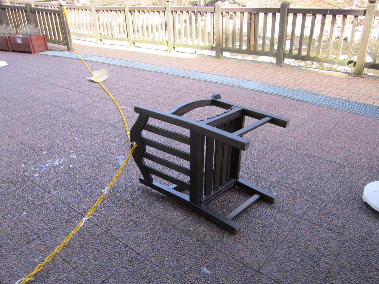 昨日の天気予報で『風』となっていれば、この椅子が倒れないように対処できました。