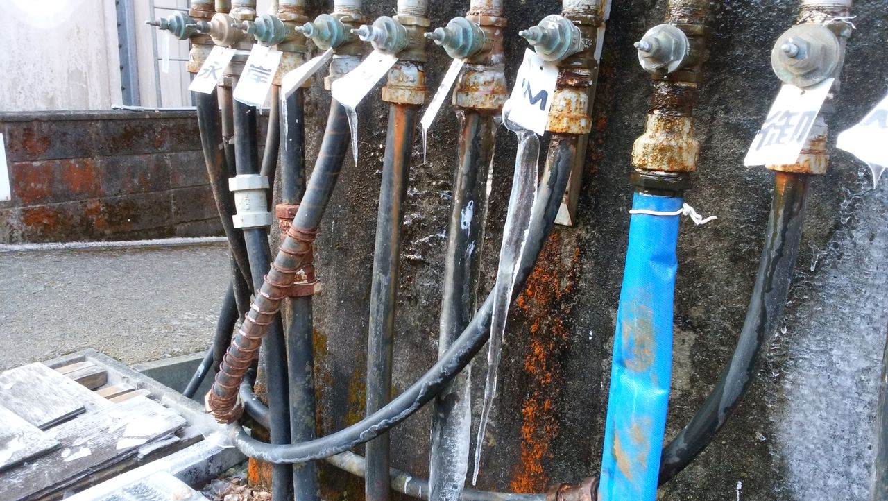 今朝は本当に寒く、山水道の分岐場所が凍っていました。