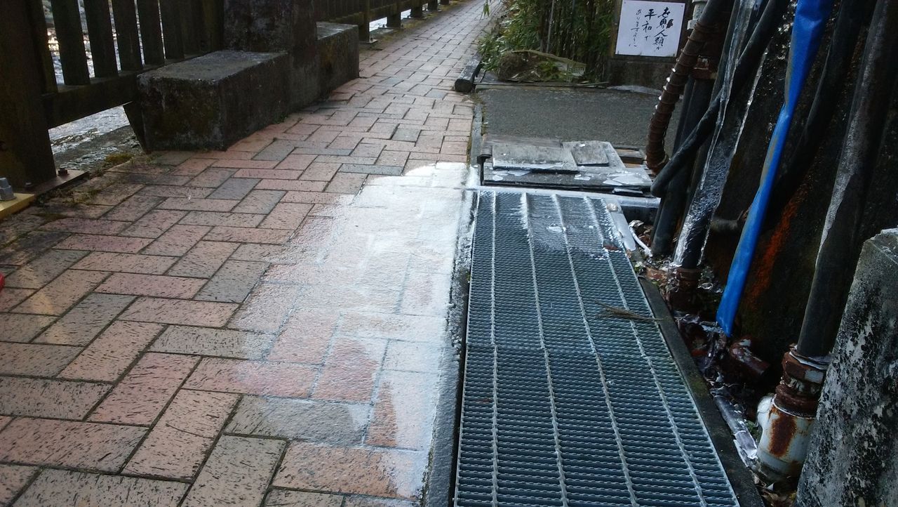 朝晩はこのように凍っている場合がありますので、滑らなうようお気お付けください。