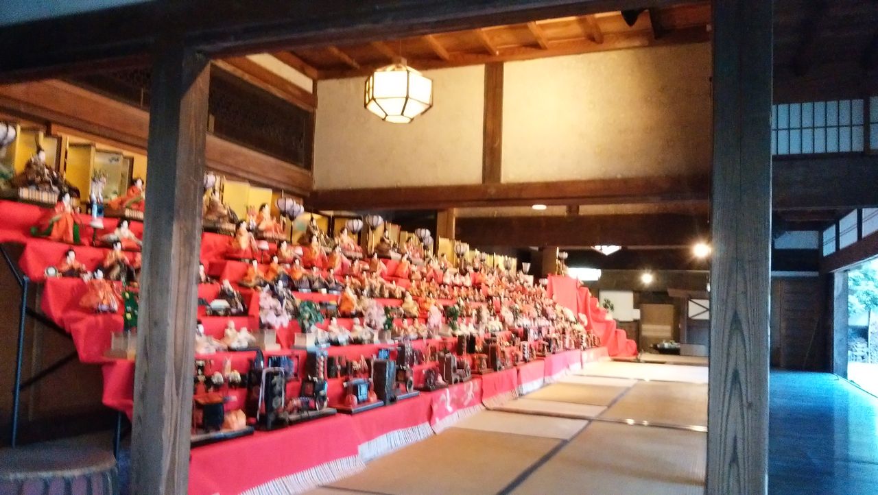 古民家の長座敷をうまく利用した荘厳なお雛さま。