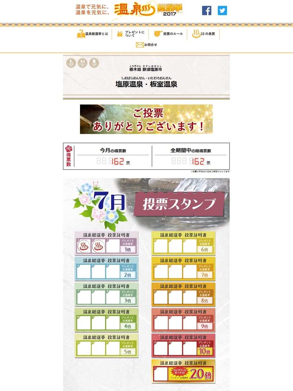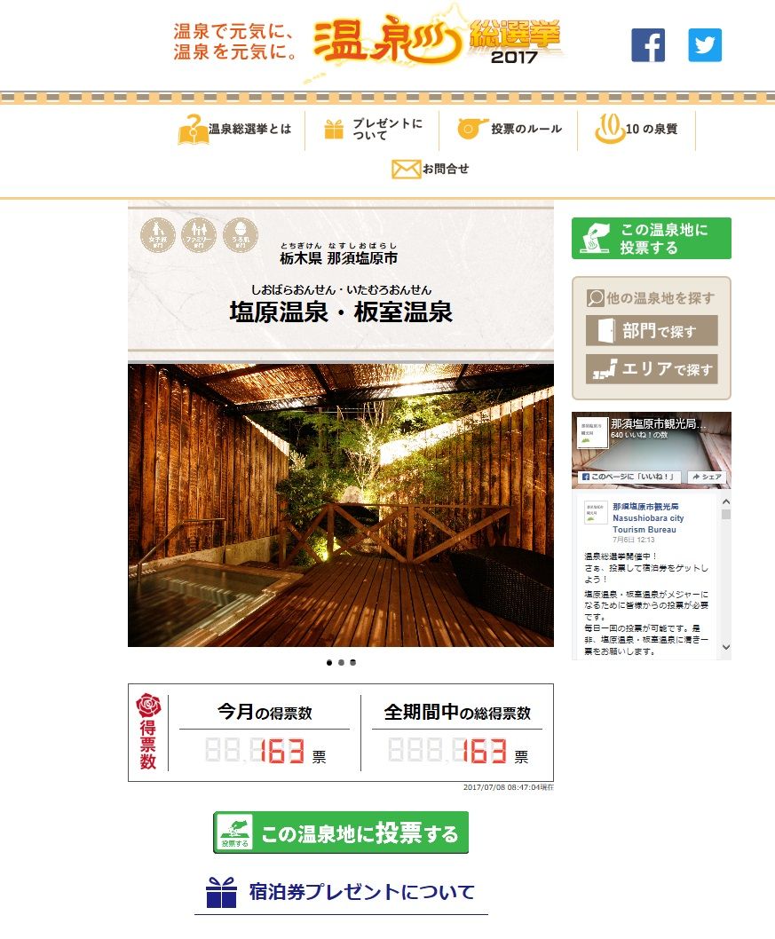 塩原温泉は「うる肌部門、ファミリー部門、女子旅部門」にエントリーしています。