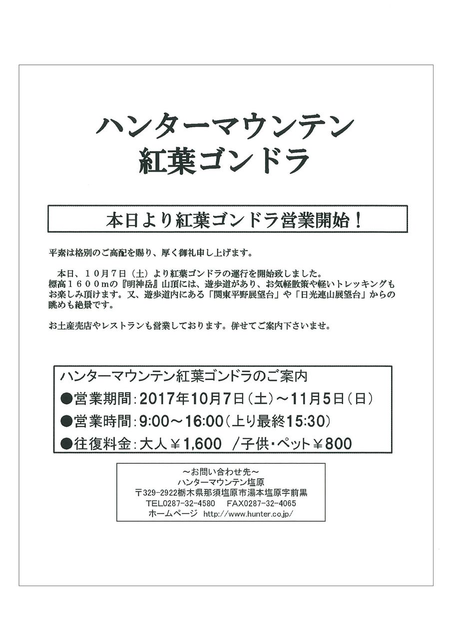 さて、そんな中、ハンターマウンテン塩原で『紅葉ゴンドラ』が始まりました。