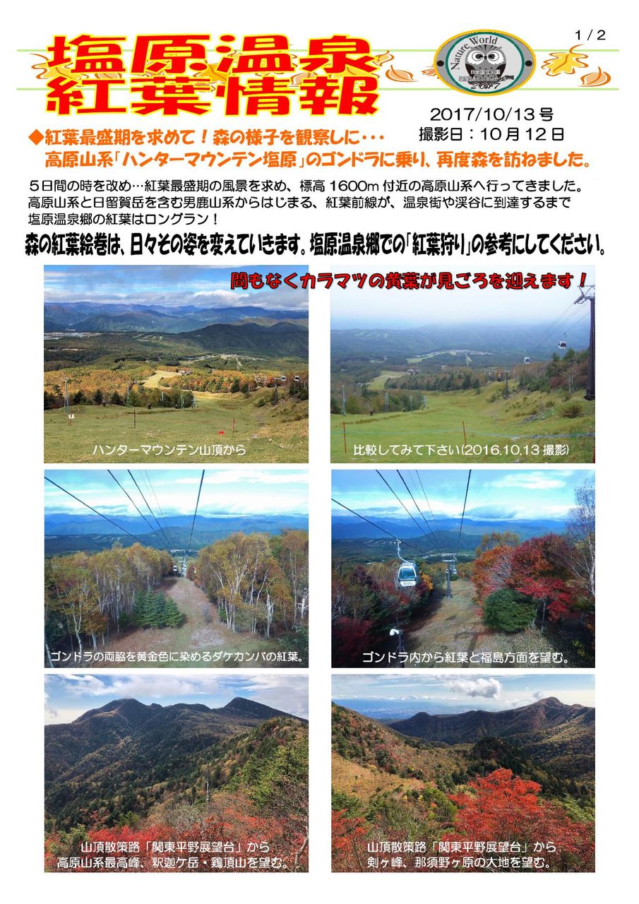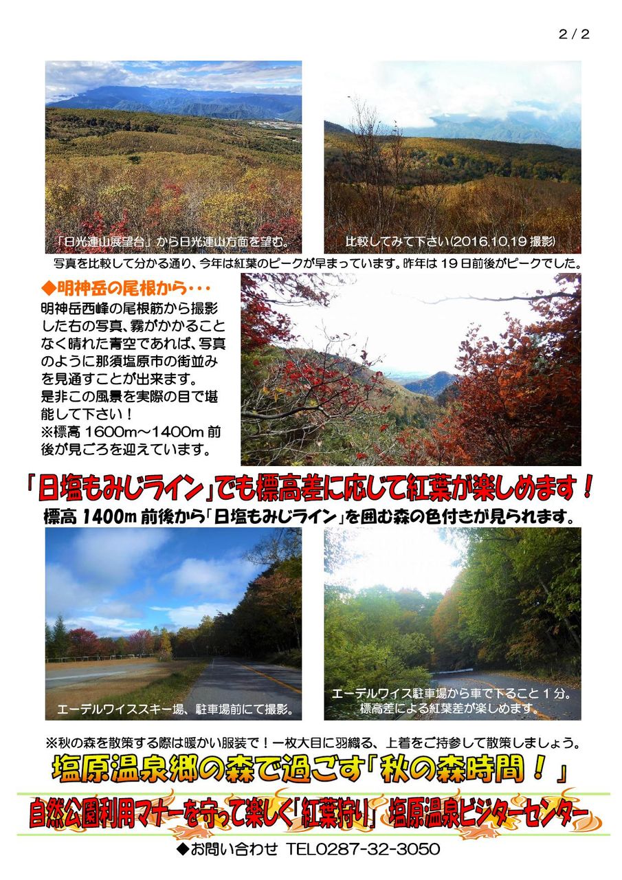 すると、塩原の紅葉時期を聞くだけでなく「どこどこはもう色づいていましたよ」というお話もしてくれます。