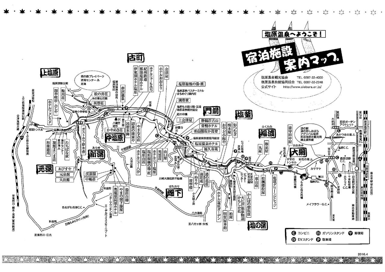 箒川に沿って、東西に約9キロ、幅約4キロの細長い塩原温泉ゆえ、一枚にまとめるとこのように『長~い地図』になってしまうのですが、この長さゆえに『多種多様な温泉』そして『地域柄』があったりして面白いです^^