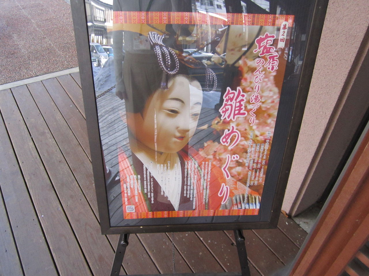 雪ばっかりで嫌だな~という気持ちを華やかにしてくれる沢山のお雛飾りに会いに、塩原の街をぜひ『のんびり湯っくり』めぐりに来てください♪