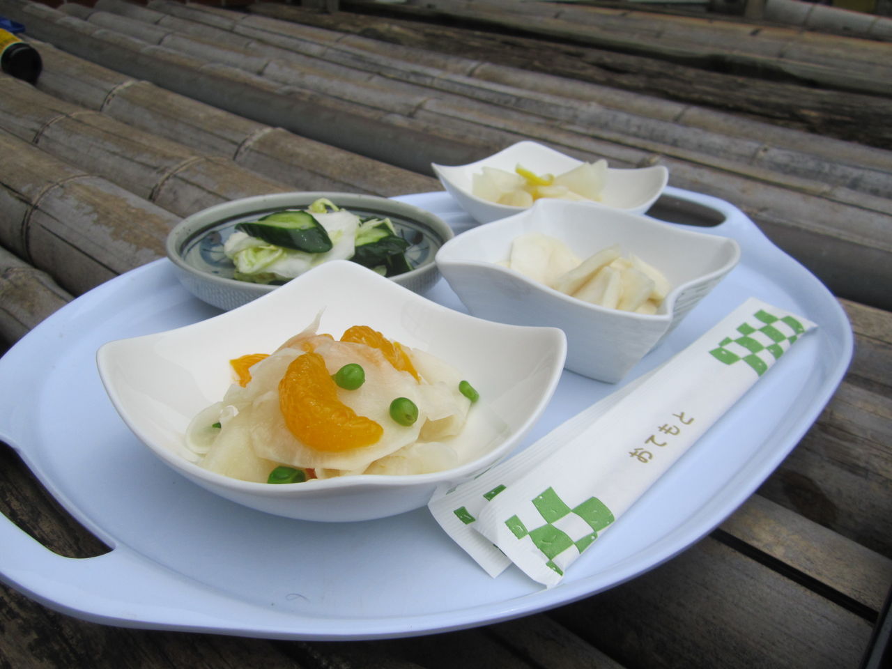 彩りもキレイなみかんと甘酢和え、ピリッと千切り生姜の効いたときゅうりとの和え物、甘酢とレモンでデザートのようなさわやかさ!の和え物、等々…