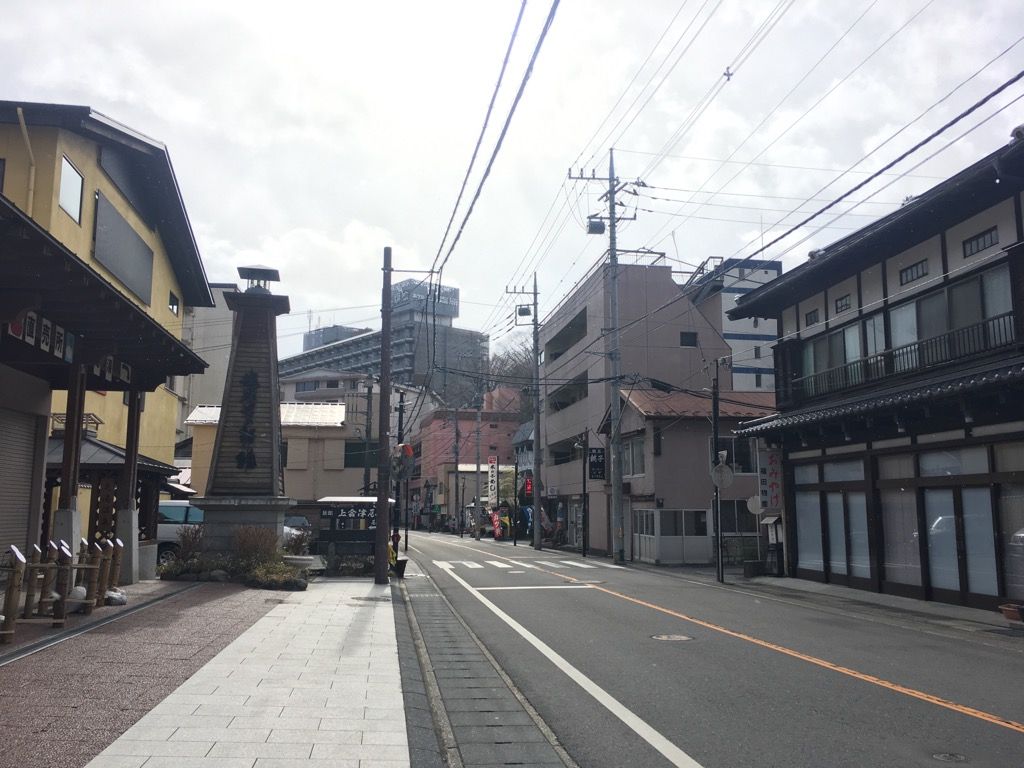 粉雪が風に舞うだけで、積もることはありませんでしたので、現在温泉街中心部の道路上に積雪はございません。