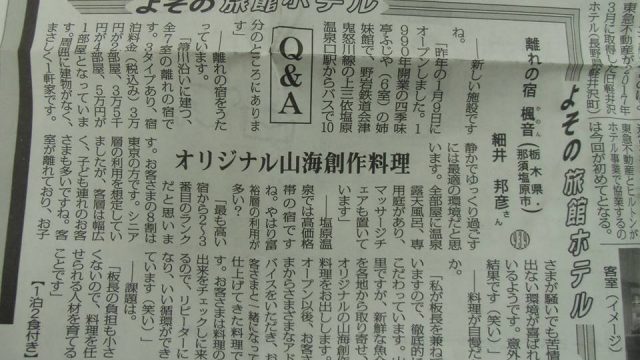 塩原温泉郷「離れの宿 楓音」が紹介されました! 2018年1月25日 那須塩原便り by aoki 塩原温泉郷「離れの宿 楓音」が紹介されま... 2018年1月25日 那須塩原便り by aoki 観光経済新聞1月20日号に 塩原温泉郷の「離れの宿 楓音」が紹介されました。 昨年1月に新規 ...
