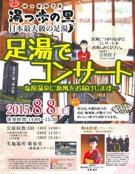 8/8 塩原温泉湯っ歩の里で「足湯でコンサート」 2015年7月28日 那須塩原便り by nakamura 8/8 塩原温泉湯っ歩の里で「足湯でコン... 2015年7月28日 那須塩原便り by nakamura 来月8月8日(土)に塩原温泉湯っ歩の里で「足湯でコンサート」イベントが開催されます。 毎年恒例のイ ...